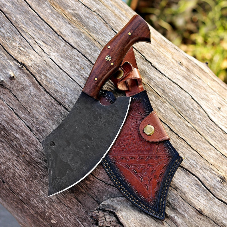 Complete with a premium engraved leather sheath for protection and easy portability, this cleaver makes for an outstanding gift for anniversaries, birthdays, Halloween, and more. Designed for durability and high performance, this cleaver knife is built to last through years of use, becoming a cherished tool in any kitchen or collection.
