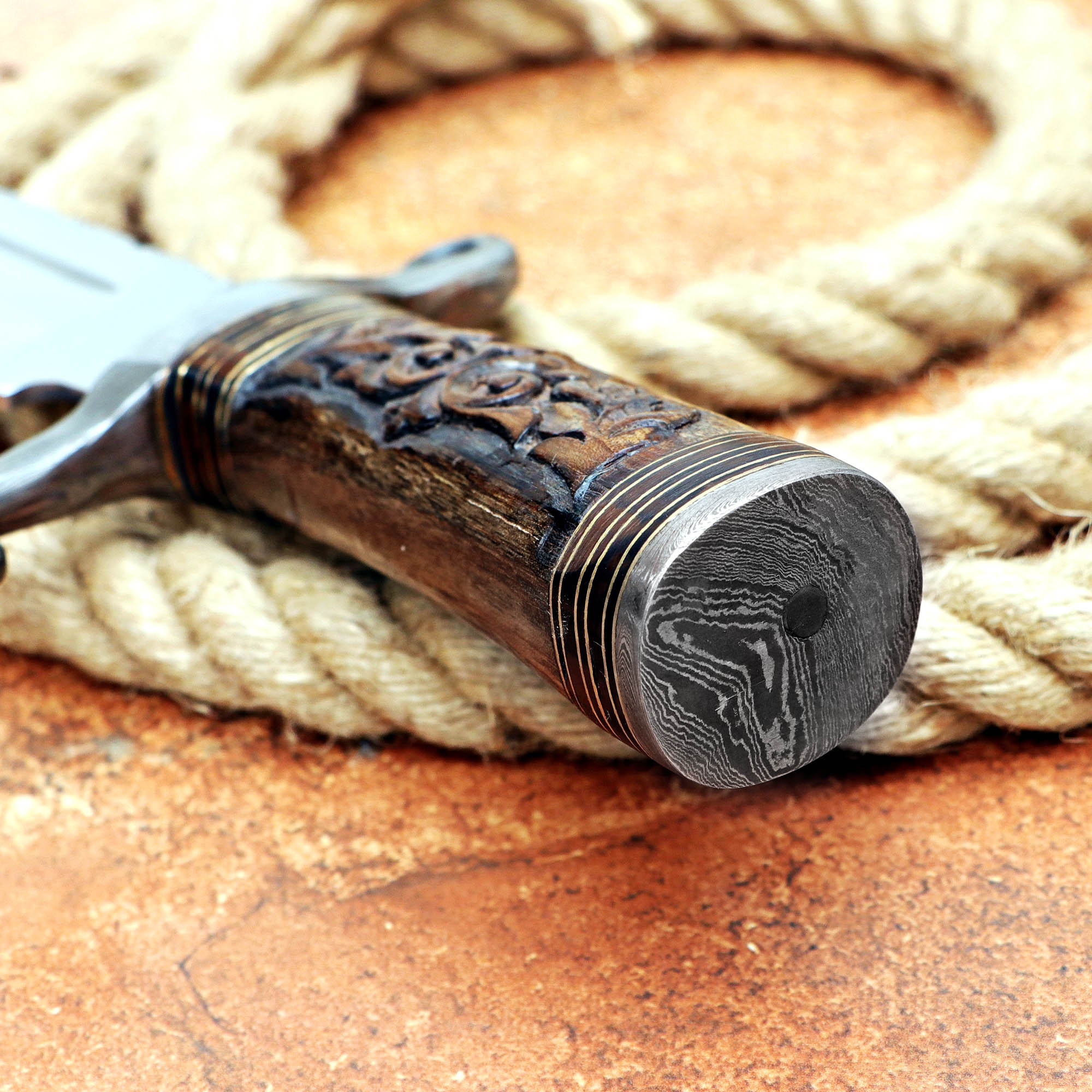 Elevate your hunting adventures with our exquisite Engraved Handle Handmade Hunting Knife. Crafted with a sharp, durable blade made from high-quality steel, this knife is designed for performance and style. The unique engraved handle adds a touch of personalization, making it a true collector's item. Complete with a leather cover for protection and easy transport, this knife is an essential companion for any outdoor enthusiast.